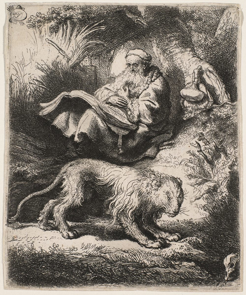 Rembrandt, Saint Jérôme lisant au pied d’un arbre, 1634. Eau-forte sur papier vergé.